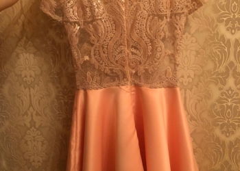 Платье спереди укороченное, сзади в пол, женское, шифоновое. Размер - 42-44. Молнии нет. Брительки регулируются.
