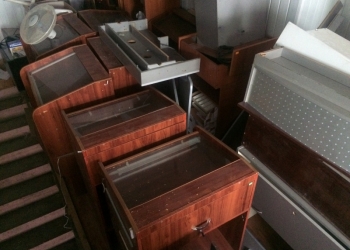 Продаются стеллажи 9 шт, тумбы - 3 шт, ресепшен. Дерево, цвет белый/ Можно по отдельности.