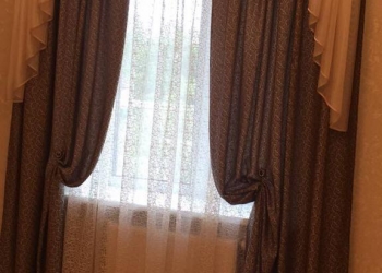 Продам роскошный комплект,который состоит из 2 штор,одного тюля,оформленных изящными узорами и ламбрекена.